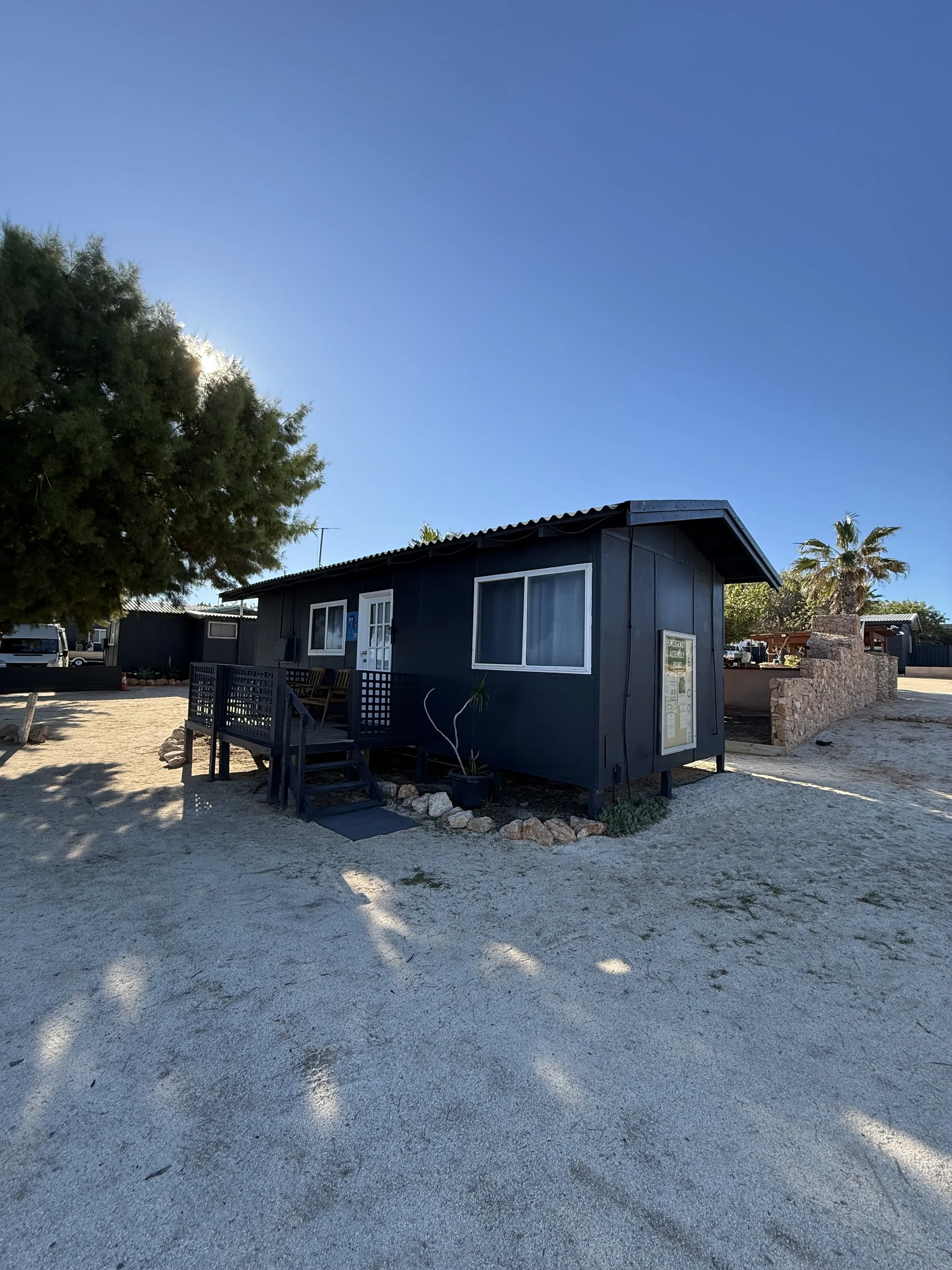 Shark Bay Cottages consists of 12 basic holiday shacks and 10 caravan sites for self sufficient vans in an idyllic location right across from the beach on Denham’s main street.